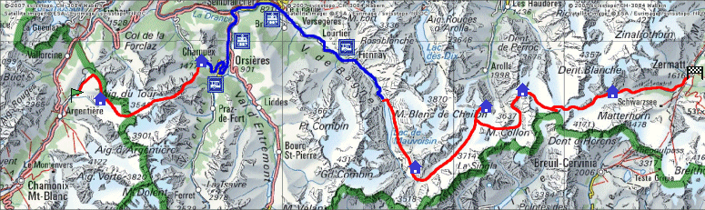 De Zermatt A Chamonix - Une traversee difficile en haute altitude dans les alpes francaises et suisses, depuis chamonix jusqu'a zermatt en suisse sur 5 a 7 jours.