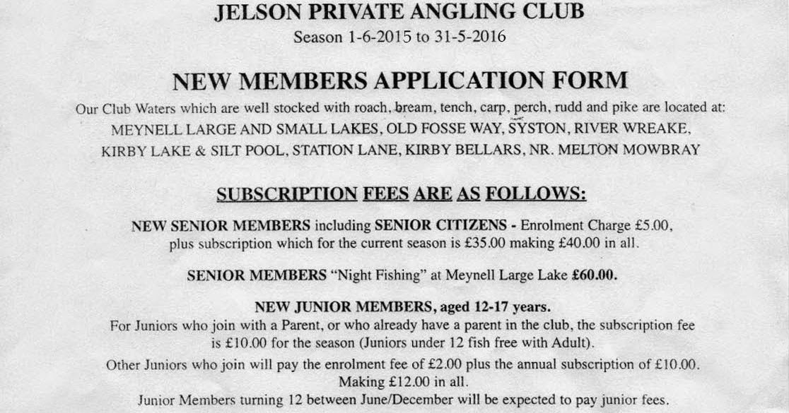Fishing Club Application Form