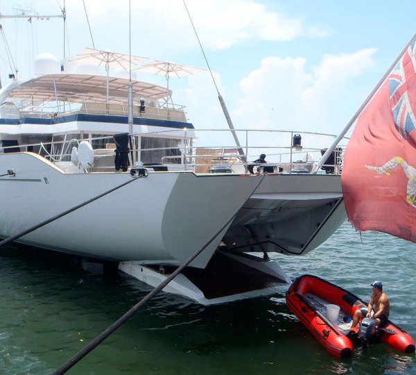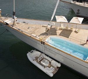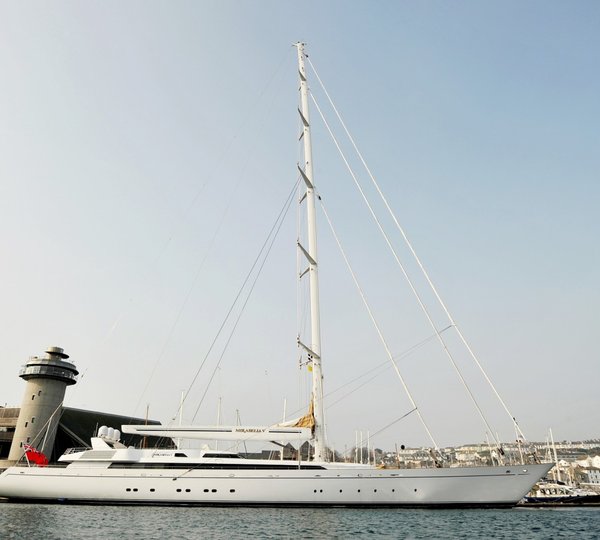 Mirabella V Yacht / With a beam of 9 m and a draft of 3.78 m, she has a grp hull and grp superstructure.