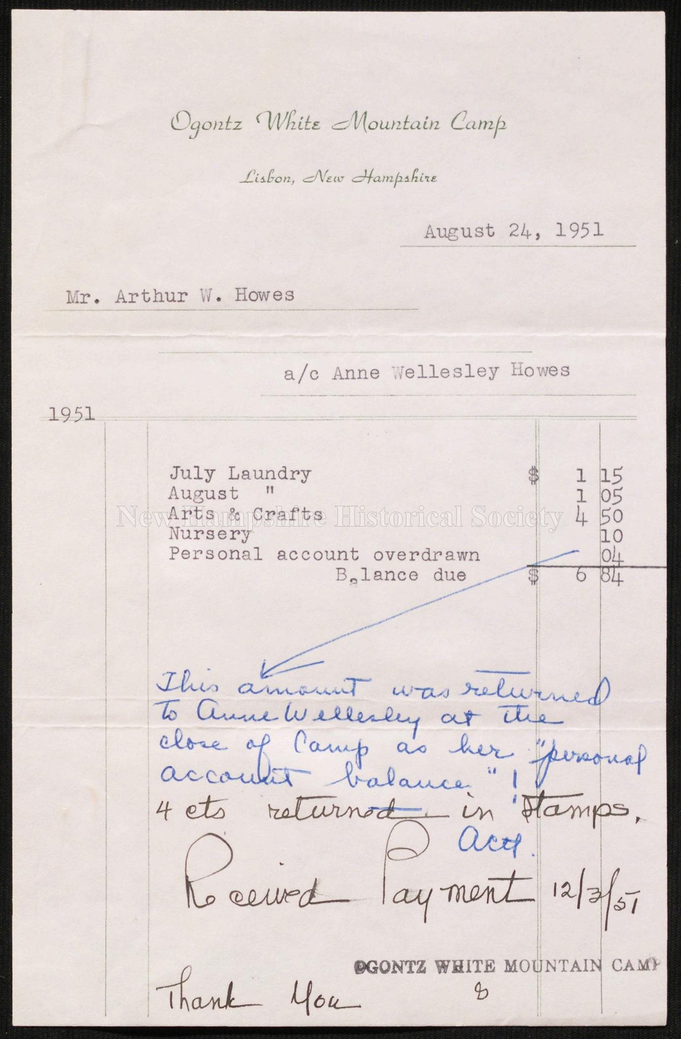 New Hampshire Historical Society Bill To Arthur W Howes From The Ogontz White Mountain Camp 1951 August 24 Bill To Arthur W Howes From The Ogontz White Mountain Camp 1951 August 24 - Miss sutherland married brown in 1917, reportedly after meeting him while on vacation in colorado.