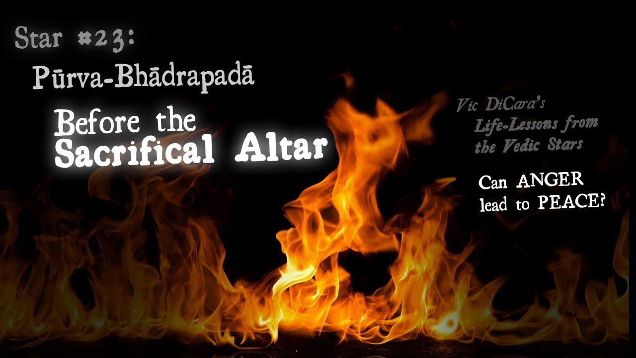 Purva Bhadrapada : Swords, two front legs of funeral cot, man with two faces, also a single ray of the sun, skull and bones.