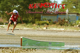 Skimboard Canada : Typically, skimboarders first push the board ahead of them on shallow water.