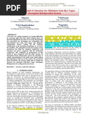 Theortical Model Of Absorber For Miniature Libr H2o Vapor Absorption Refrigeration System Heat Transfer Refrigeration - Chandrashekar tk is on facebook.