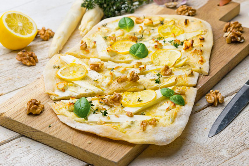 Zitronenpizza - Zitronen waschen, trockenreiben und von einer zitrone die haelfte der schale abreiben.